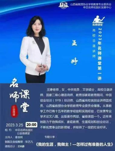 四、学以致用,服务社会。她注重理论联系实际,并乐于服务社会,身兼多种校外职务,“山西省高校就业创业指导师资库”成员和“山西省教授协会学前教育专业委员会”理事。同时,为解决学生的就创业问题,获得了SYB创业培训讲师资格,为校内外学生提供就创业指导,累计服务700余人次。同时,为践行社会主义核心价值观,积极投身公益事业,义务为幼儿园、学校、社区等举办家庭教育公益讲座10余场,服务1000余人次。