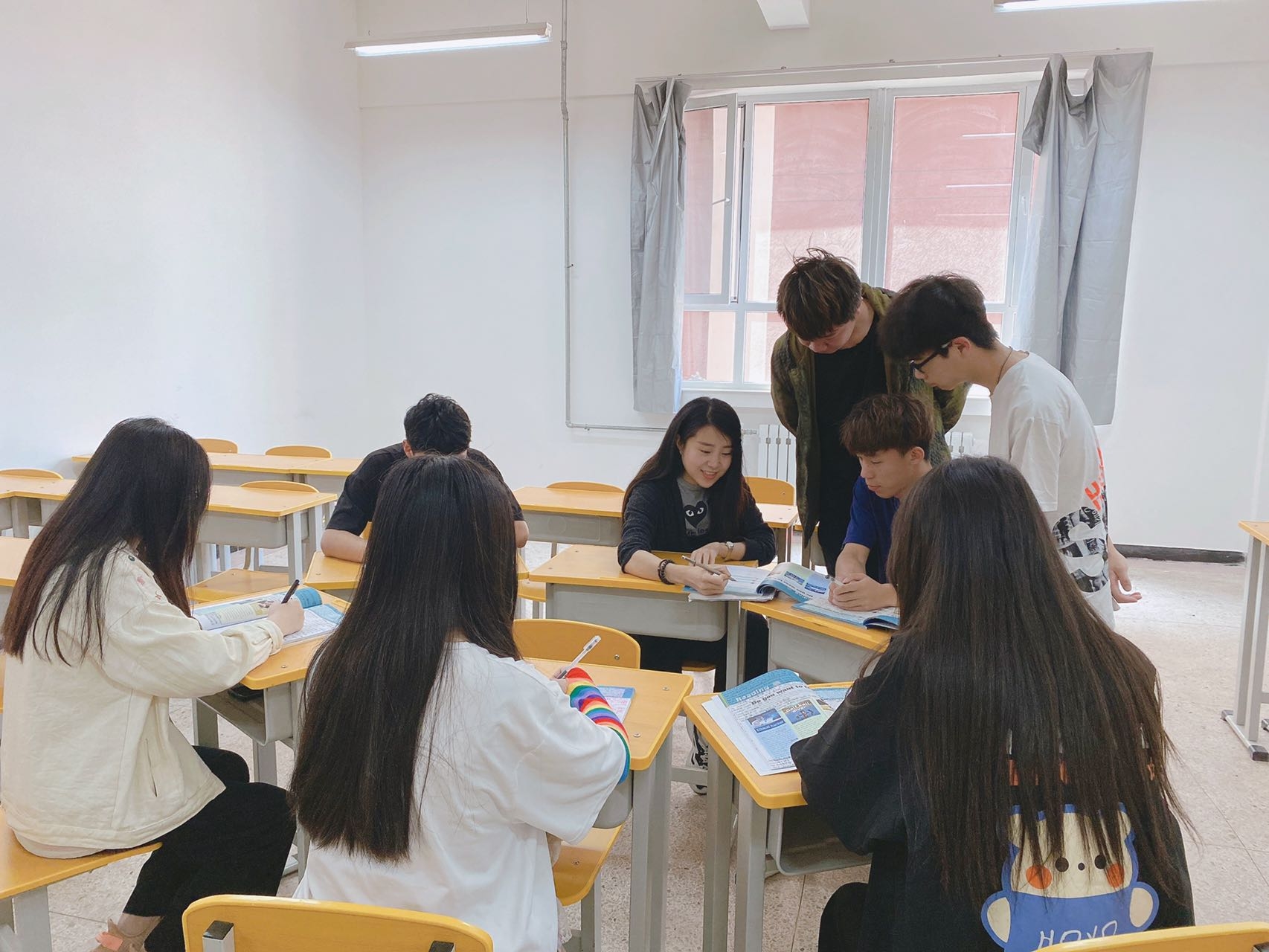 韩老师以解决目标问题为导向,注意授课方法和对同学们思维品质和学习能力的培养。她循序渐进地培养同学们发现问题、分析问题并解决问题的习惯和能力,让同学们的大脑动起来。她告诉同学们, “独学而无友,则孤陋而寡闻”,“三人行,必有我师”,要学会互相学习。她鼓励同学们积极探讨问题、解决问题。在思维的碰撞中韩老师的课堂高效,学习氛围浓郁。