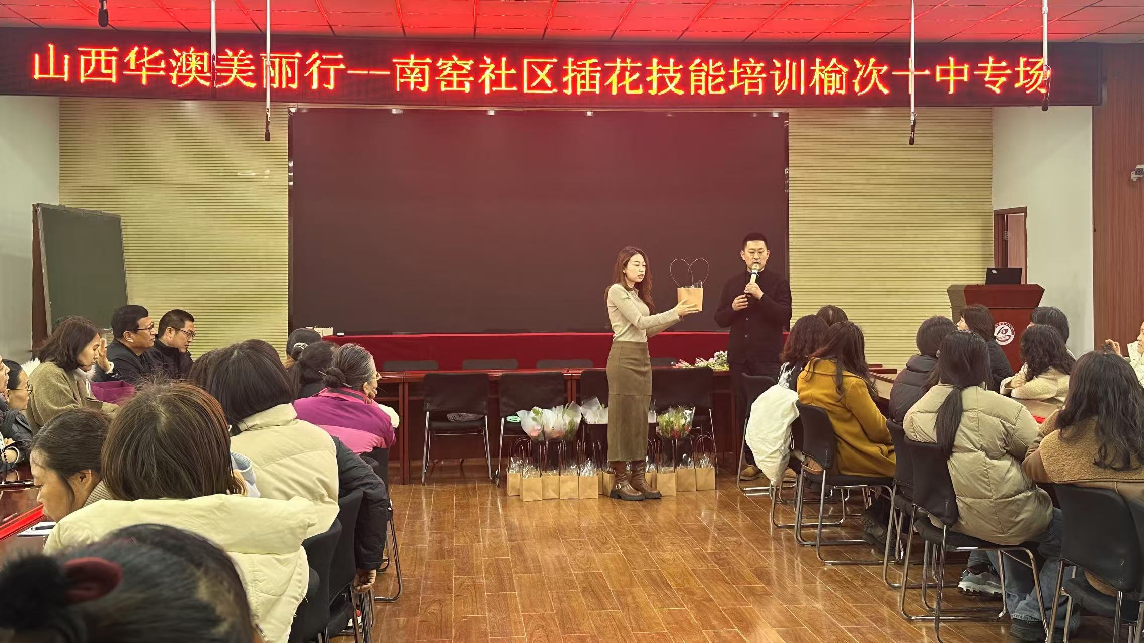 2025年3月7日,在第115个“三•八”国际劳动妇女节到来之际,山西华澳商贸职业学院艺术系受邀前往榆次区西南街道南窑社区,参加社区与榆次十中联合举办的“党建引领 共谱华章”三八妇女节主题插花活动,并进行帮扶与指导。