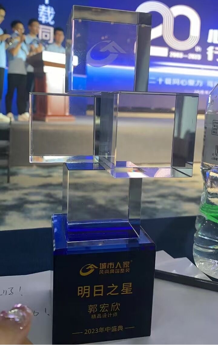 在入职的这几年内,郭宏欣也是收获满满。入职两个月后,她就担任了设计二部高端设计师一职,2024年5月荣获公司“明日之星”称号,8月荣获公司优秀员工。